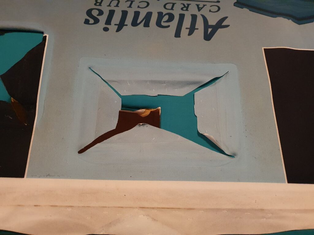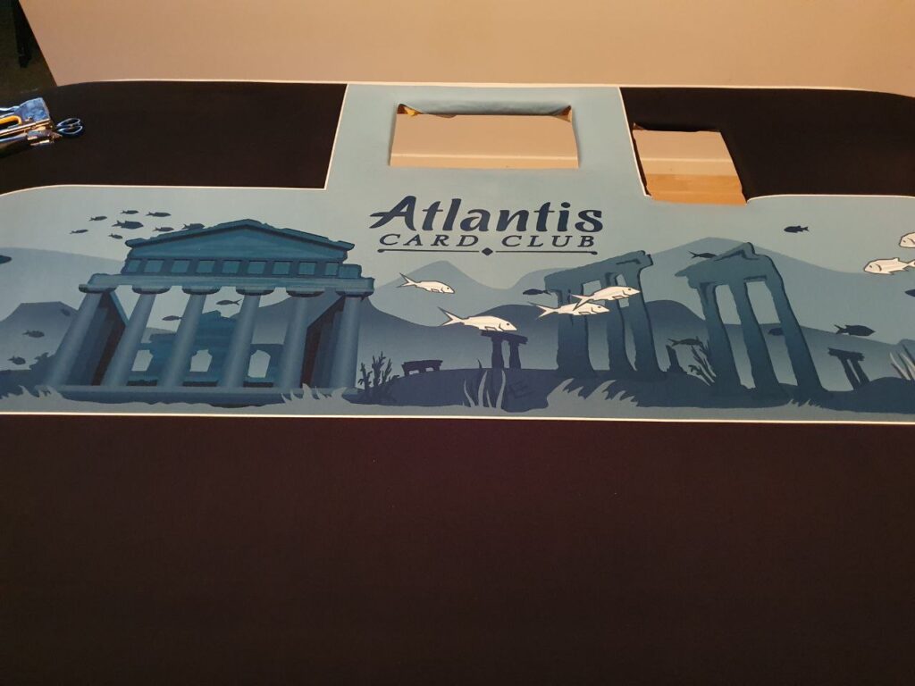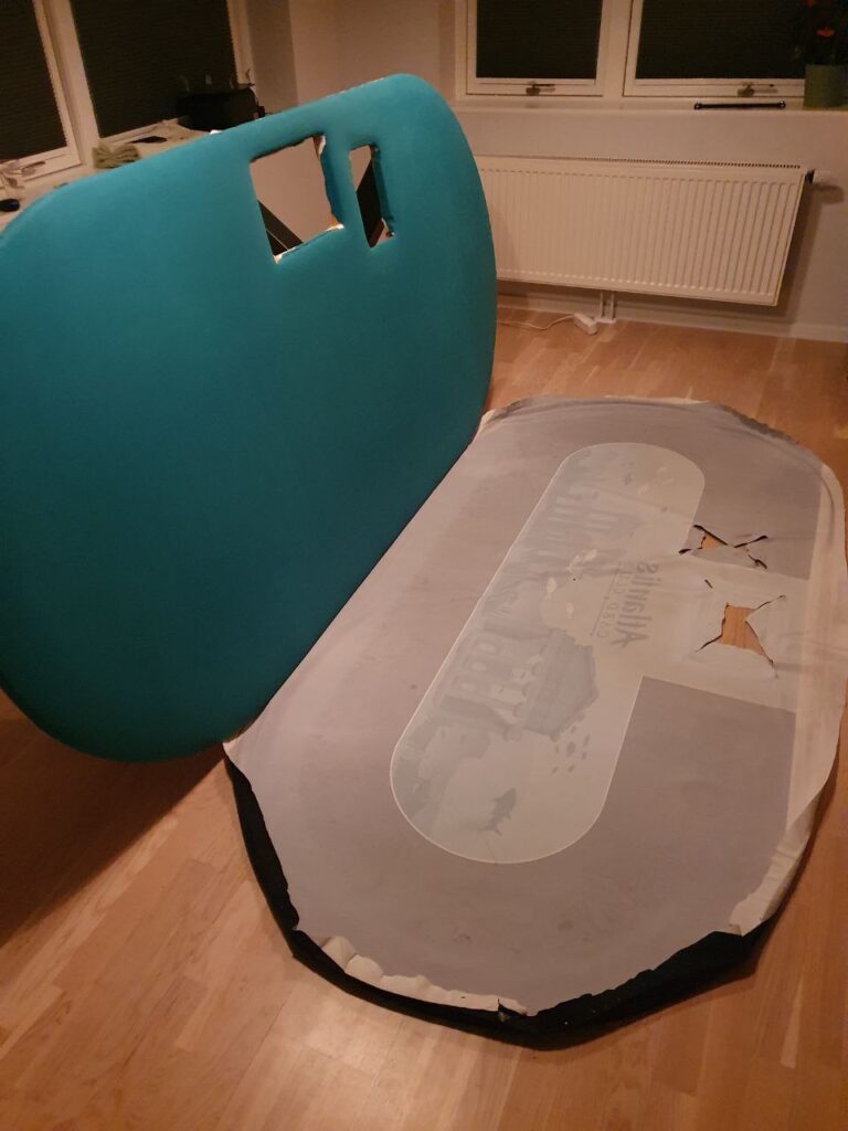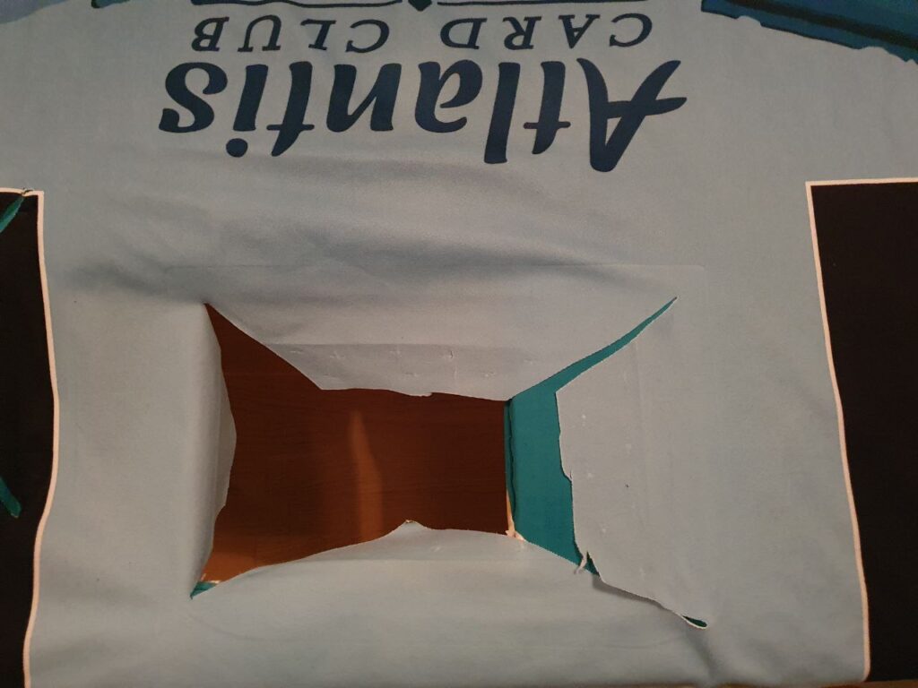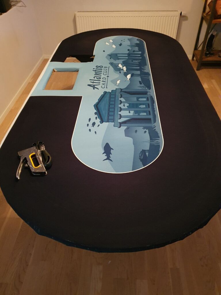 Etter live’en midtveis i Januar, benyttet jeg sjansen til å la bordplata være av så jeg fikk vaska duken som par preg av å ha vært i bruk siden den ble installert i april 2010. Som forventet så var det ikke en eneste jævel som la merke til det. 😛