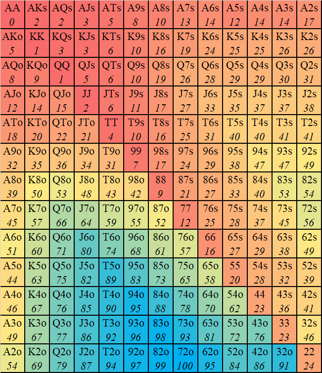 - Teknisk sett er det mulig å lage et varmekart over profit/tap vs hender ala dette, men det er langt over ferdighetsnivået mitt så ikke hold pusten.