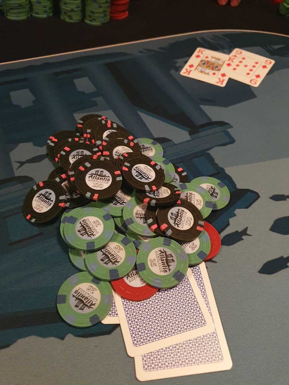 Jeg hadde håp om at vi kunne prøve en progressiv bounty turnering men dessverre ble dette litt for mye nytt å håndtere for noen, og veldig, veldig forvirrende til tross for at reglene ble delt både i messenger og muntlig (2 ganger) så det ble vanlig rebuy.