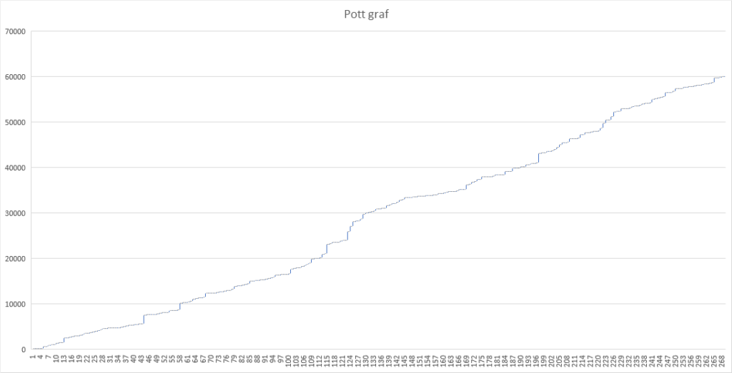 - Total sum for alle pottene i den tidsperioden var Kr. 59.990,- (!).
