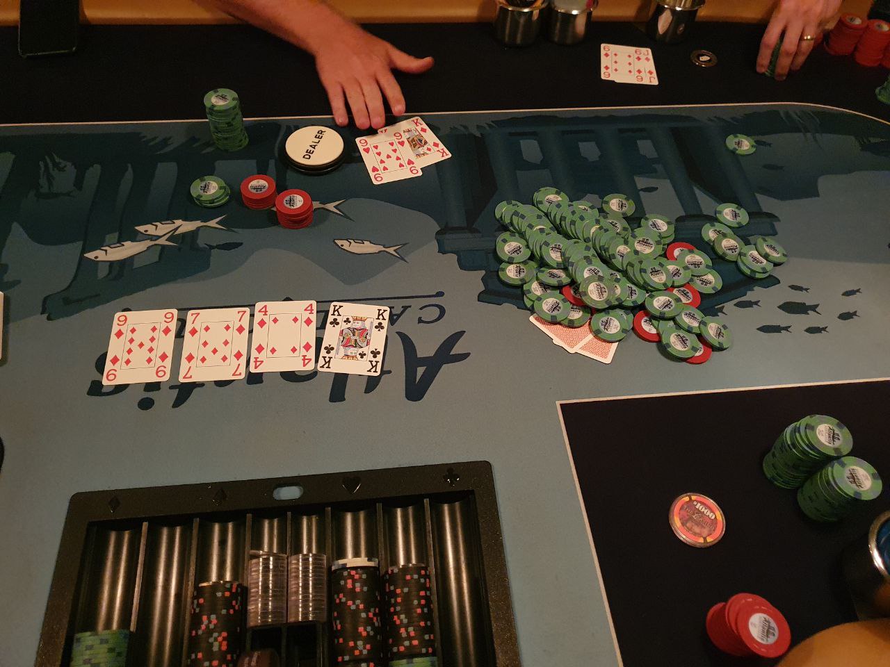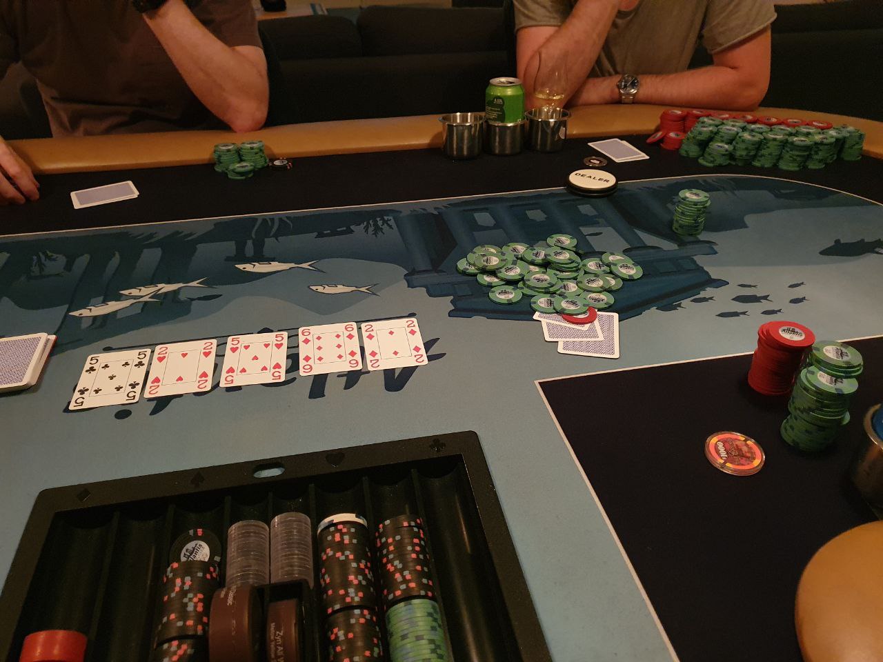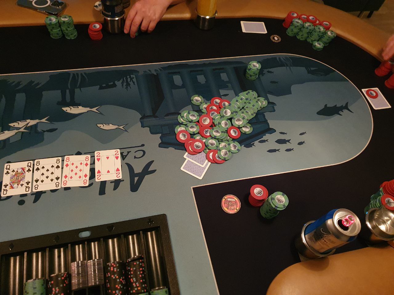 Denne runden var det 8 spillere, 11 rebuys og turneringa varte rett under 3 timer så det var litt mer som forventet.