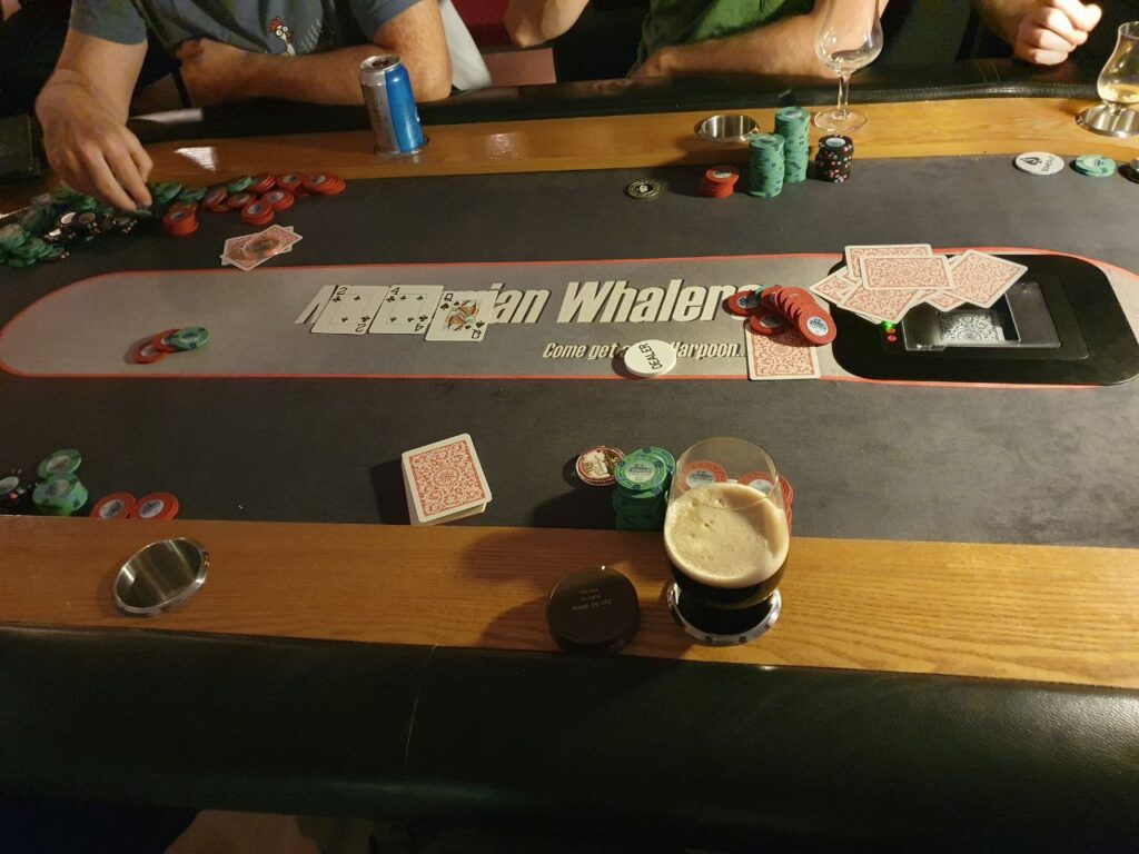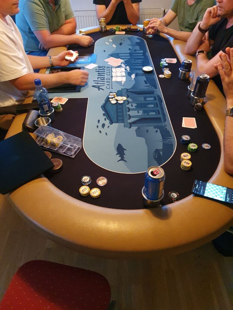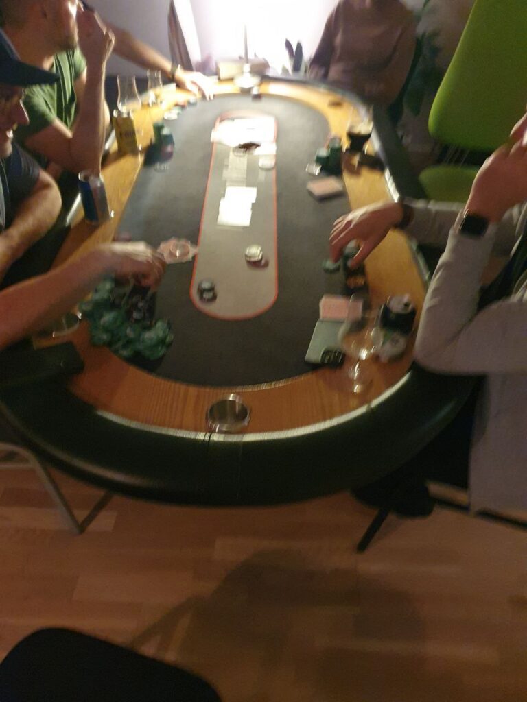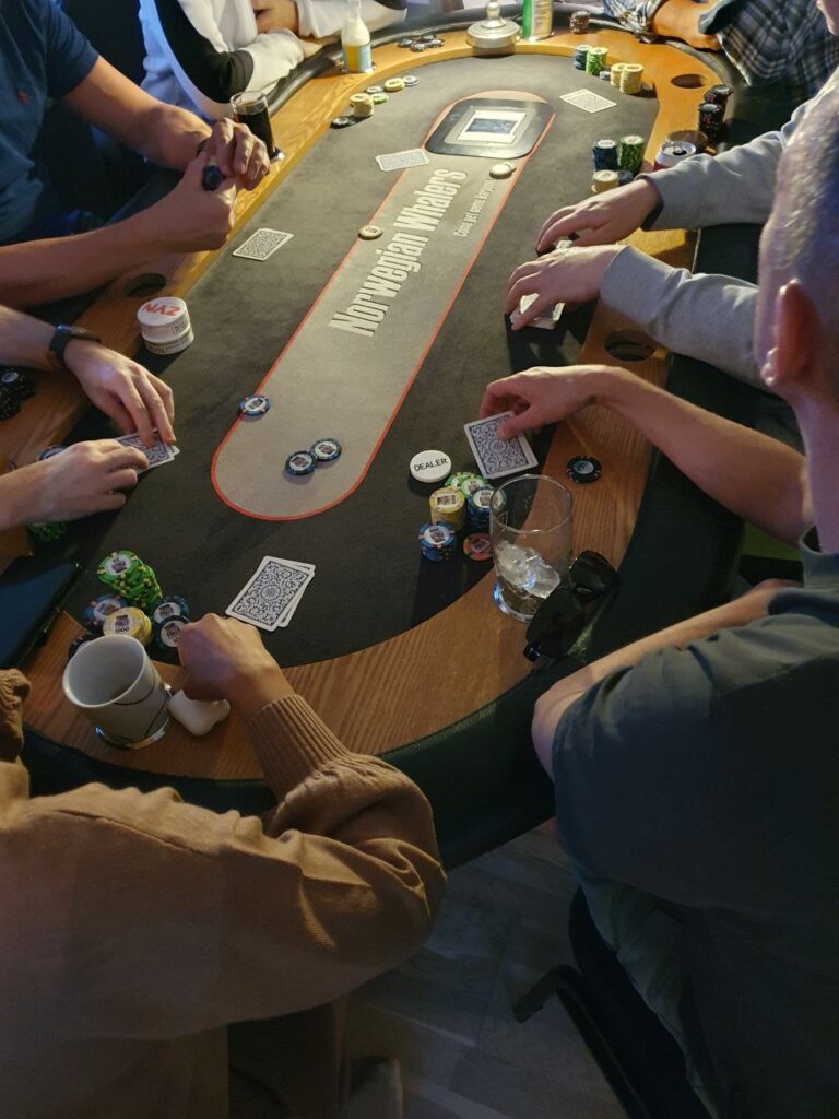 Det var flere overraskelser denne runden utenom antall spillere. Turneringa varte så vidt over 3 timer. Stor takk til Marius og Kristian som steppa opp som dealere, slik at jeg kun trengte å håndtere rebuys, add-ons og elimineringer som gjorde at det ikke ble noen pauser som det vanligvis blir når jeg håndterer alt. Takk til Steinar og, som deal’a under cash. Det hjalp nok også å tvinge folk til å bruke cash chips så buy-in, rebuys og add-on gikk kjappere.