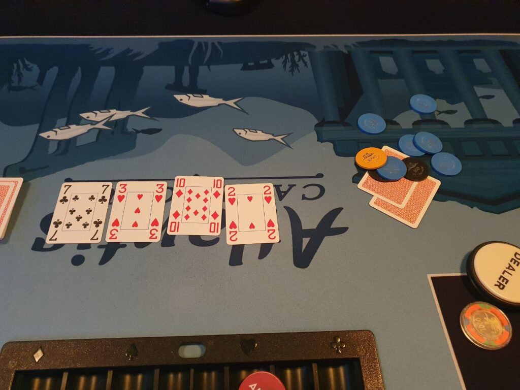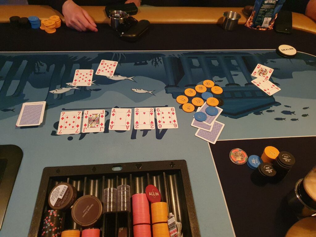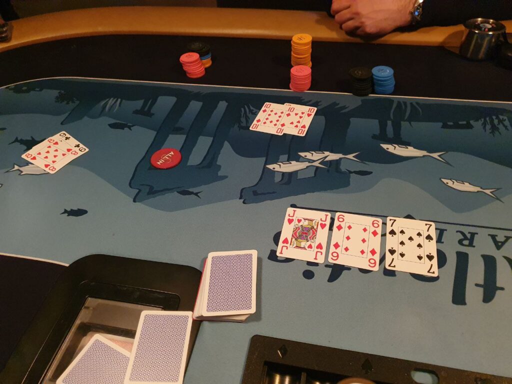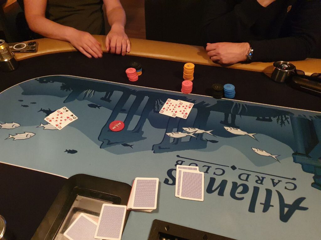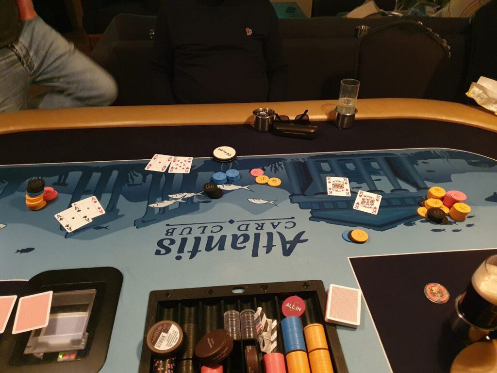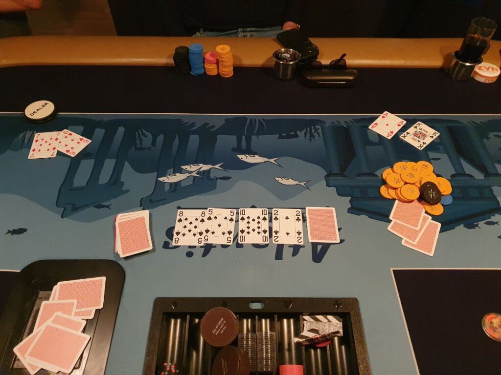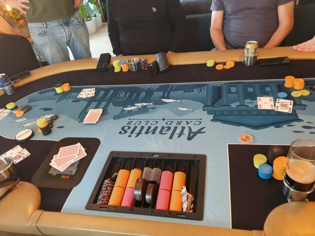 - Vi spiller 2 bord frem til det er 8 spillere igjen, da slåes de sammen. Turneringssoftware bestemmer seteplassering. Turneringa fortsetter på Atlantis bordet, cash kan ev. starte på Norwegian Whalers bordet med samme opplegg med én dedikert dealer. Turneringssoftware vil også balansere bordene slik at man f.eks. ikke sitter 6 på ett bord og 3 på et annet.